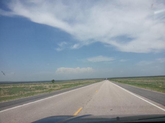 After coffee the cumulus had already begun queuing up over the Bear Lodge Mountains and my clothes starting sticking. Since far too many people were on Sand Creek south of Beulah, the rig found its way to Cox's Lake just into South Dakota off I-90. A thunderstorm cell formed right over my head and in less than a half hour one of the chasers tweeted a photo from what looks to be US85 near Buffalo: